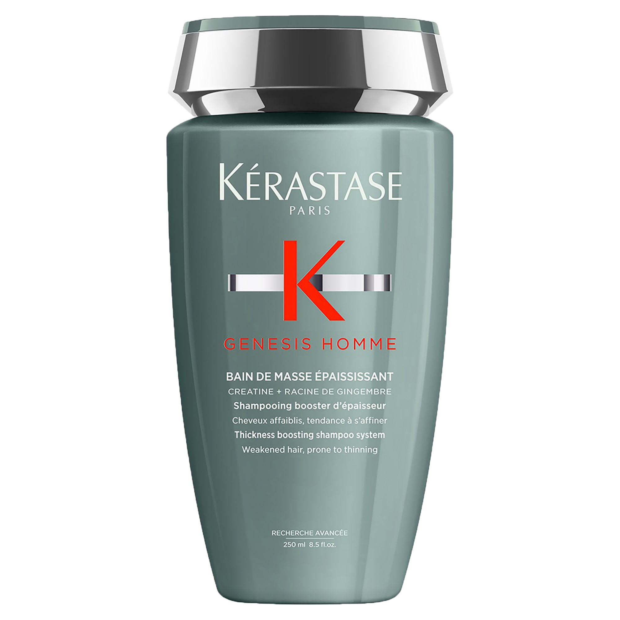 Genesis Homme Bain De Masse Espaississant Shampoo is a thickening shampoo for men who experience weakened hair prone to thinning. This men's hair shampoo for thinning hair will help cleanse scalp and remove excess impurities, dirt and oil while providing an instantly thickening action when used with the Genesis Homme thickening hair clay. Formulated with Creatine and Ginger Root, this men's hair shampoo for thinning hair will help strengthen hair to prevent breakage, while adding volume and texture. The main benefits of the Genesis Homme Bain De Masse Epaississant Shampoo include: - Gently clarifies scalp, hair & beard - Instantly thickens hair - Strengthens weakened fibres & prevents breakage - Achieves shiny, healthy hair - Provides volume & texture - Gives sensation of having more hair