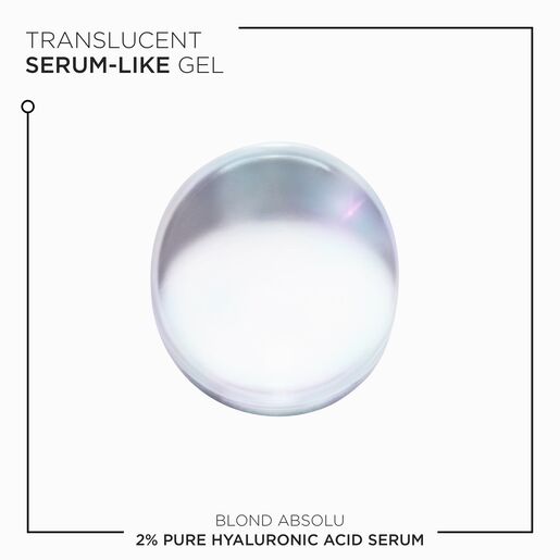 Hydrating skincare serum, now for hair. New Blond Absolu 2% Pure Hyaluronic Acid Serum by Kérastase is a hydrating, repairing blonde hair and scalp serum. It’s the ultimate blonde repair serum for bleached blondes, as it contains Hyaluronic Acid – with our highest concentration of Macro and Micro Hyaluronic Acid – to repair the surface damage of hair and moisturise both scalp and hair. The lightweight texture of this clear gel serum preserves the scalp barrier, leaving only a feeling of comfort. Tested on freshly lightened hair, this Kérastase serum repairs 20% of surface damages in one use*, for stronger blonde hair, that is replenished, plumper and intensely hydrated. Just like with skincare, you can layer 2% Pure Hyaluronic Acid Serum with Blond Absolu Huile Cicaextreme hair oil, to seal in the hydration, for ultimate repair. Recyclable bottle, made of 20% recycled glass. #YouDareWeCare *Surface damage. Instrumental test after application of 2% Pure Hyaluronic Acid Serum