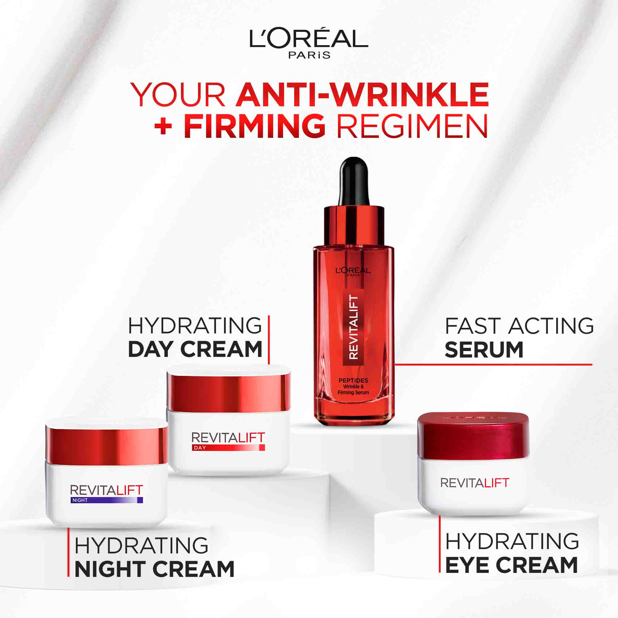 L'Oréal Paris Revitalift Peptides Wrinkle & Firming Serum is ultra enriched with the anti-wrinkle and firming actives elastis, peptides, pro-retinol and adenosine to help smooth, reinforced skin elasticity and to target premature signs of ageing.