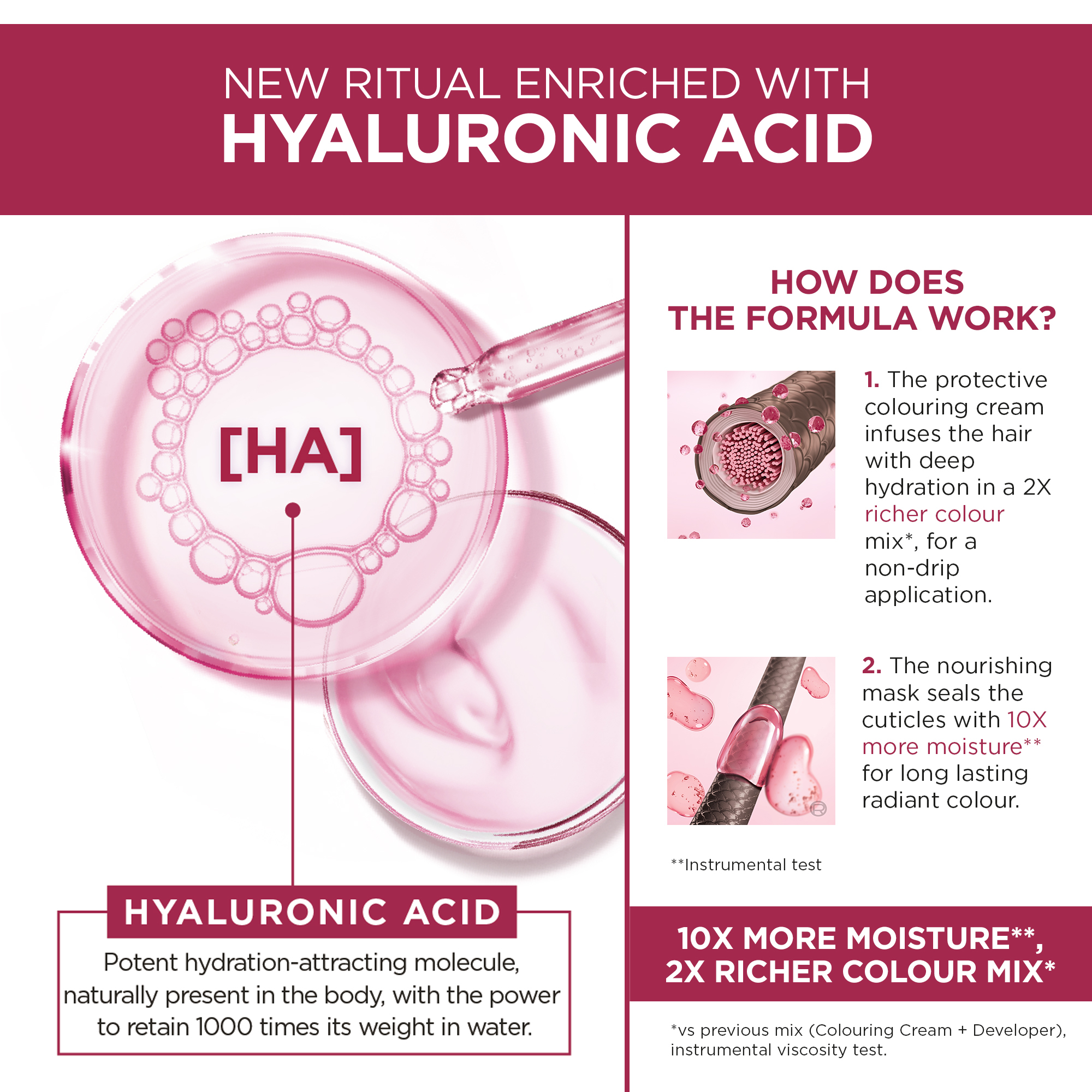 Experience visibly better hair quality than before colouring with Excellence Crème by L'Oréal Paris, now enriched with Hyaluronic Acid. 100% Grey Coverage.