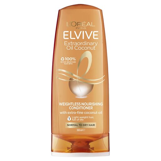 L'Oréal Paris Elvive Extraordinary Oil Coconut nourishes dry and damaged hair leaving it soft, shiny and non-greasy with a delicious coconut fragrance.