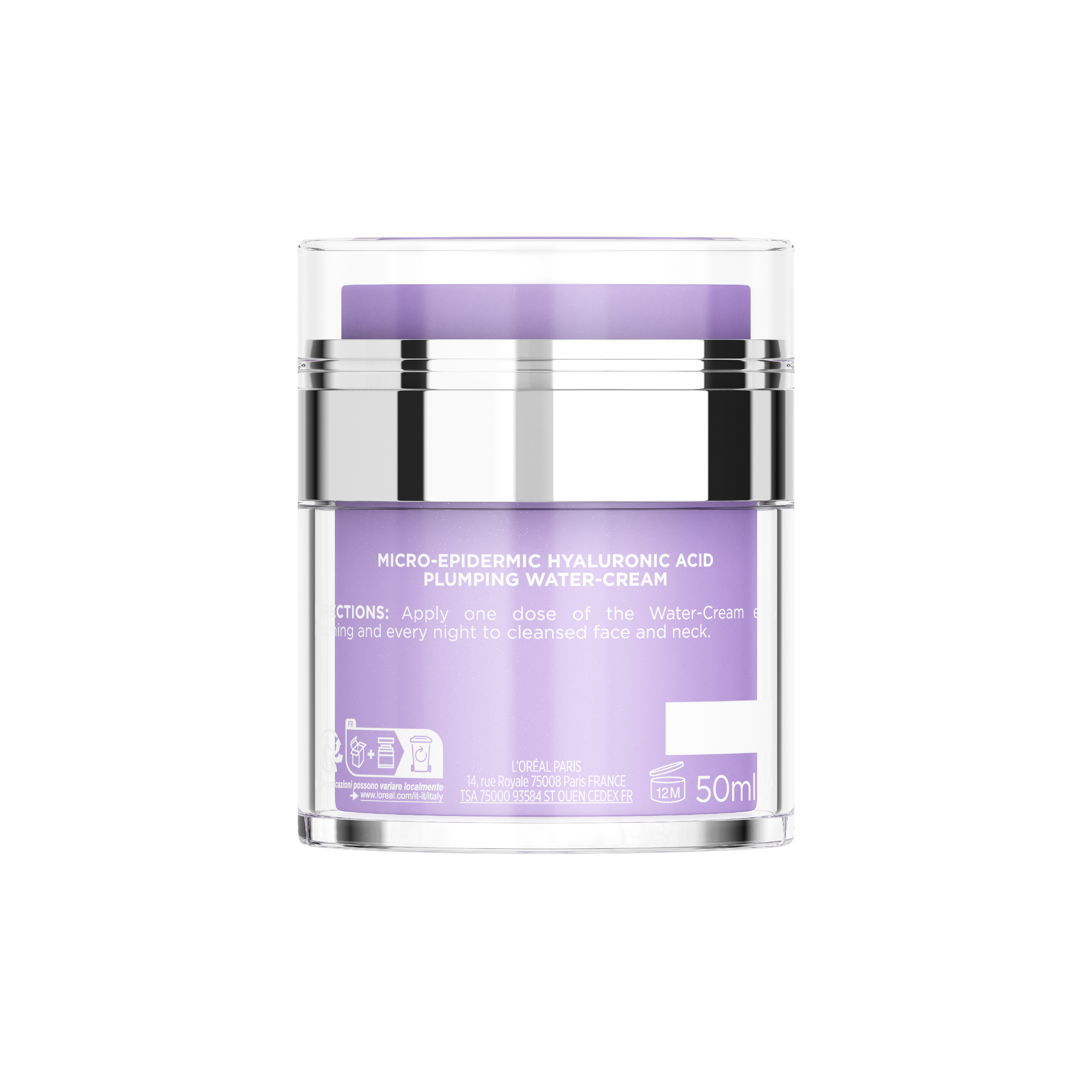 L'Oréal Paris' NEW Revitalift Filler Plumping Water Cream intensely hydrates and re-plumps lines & wrinkles for plumper, younger looking skin. The perfect base for makeup! Packaged in our innovative press-pump jar for optimal hygiene and the perfect single dosage with just 1 press! Formulated with 2 types of Hyaluronic Acid: Micro Hyaluronic Acid to intensely re-plump lines and wrinkles, and Micro-epidermic Hyaluronic Acid which is 50X smaller and able to penetrate deeper into the skin's layers to fill lines and wrinkles from within. The formula is reinforced with 3 types of nourishing Ceramides which help to reinforce the skin's barrier and lock in moisture. Niacinamide and Glycerin also combine to further lock in lasting hydration. The result? In just 2 weeks, skin is 3X more plump with lines reduced for 100% of women.* Validated by dermatologists. Suitable for all skin tones and types, including sensitive skin. Lightweight, non-sticky, rapidly absorbing. *Cosmeto-clinical scorage, 85 women, 2 weeks.