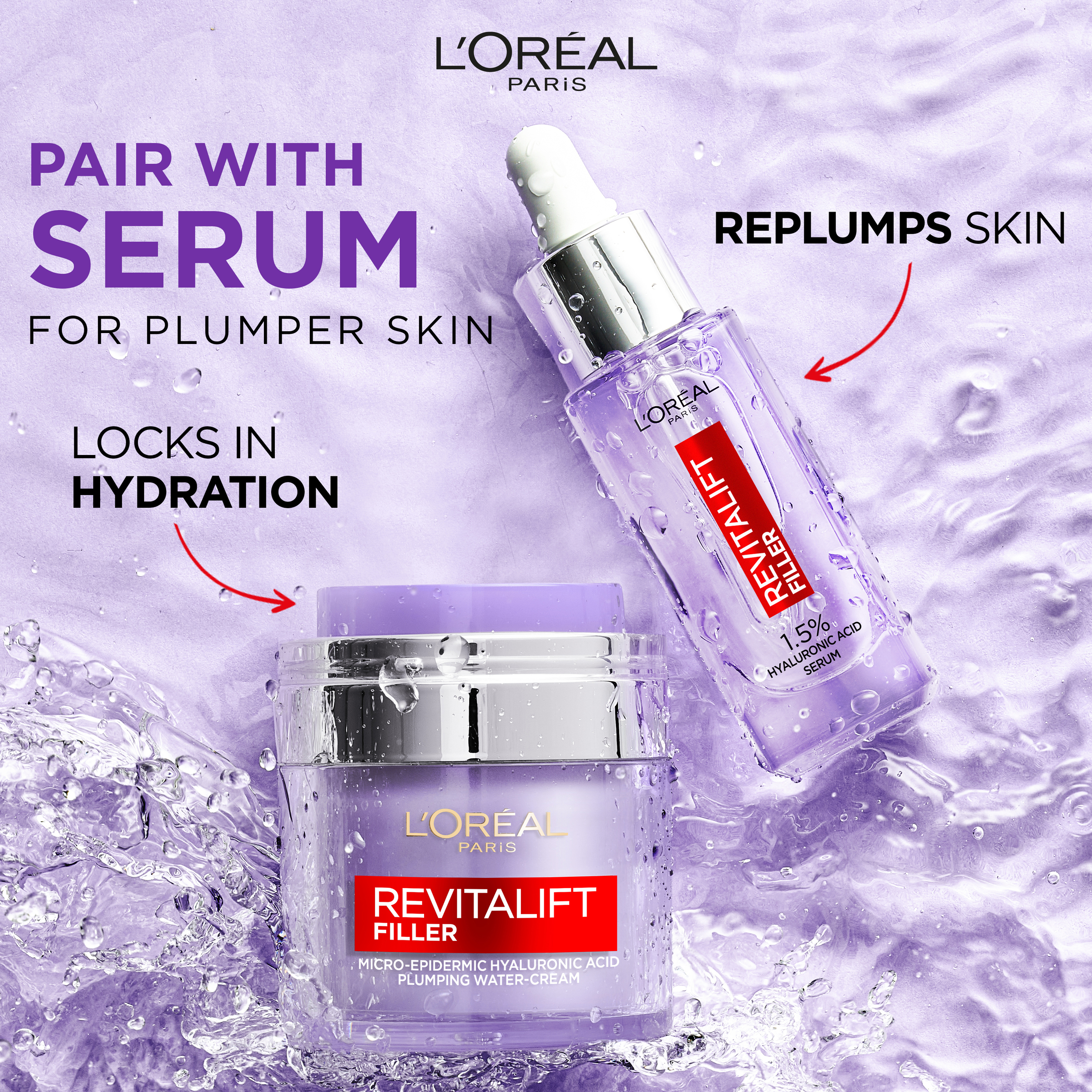 L'Oréal Paris' NEW Revitalift Filler Plumping Water Cream is formulated with new micro-epidermic Hyaluronic Acid, Niacinamide and a combination of 3 nourishing ceramides.