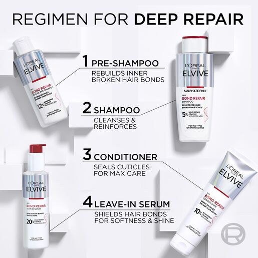 L'Oréal Paris Elvive Bond Repair Conditioner Conditioner is powered by citric acid to penetrate beneath the hair surface, reinforcing broken hair bonds while improving hair manageability and softness.