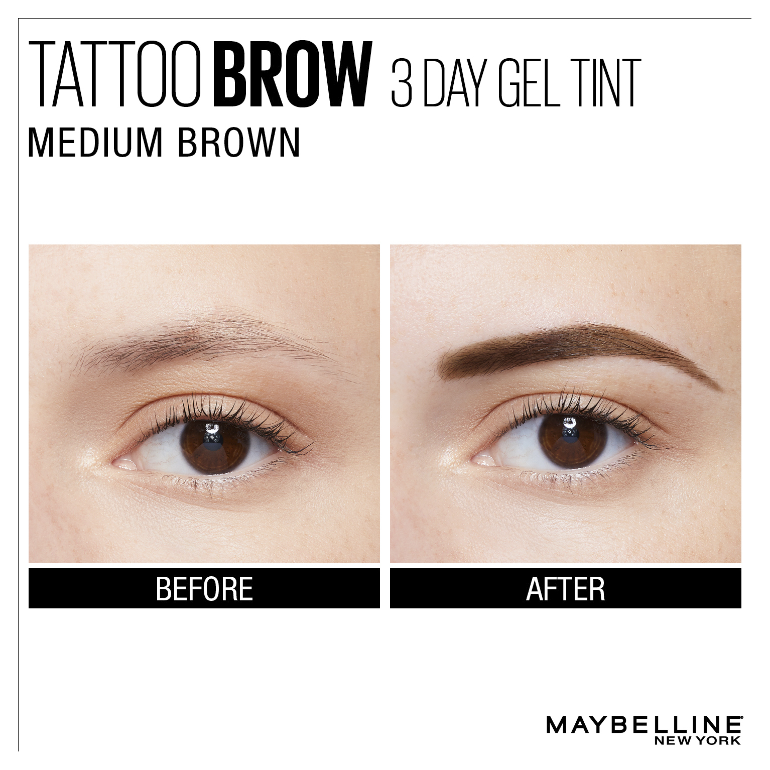 Maybelline Tattoo Brow 3 Day Gel Tint is our Brow Breakthrough! A game-changing peel-off gel-tint that leaves brows filled and conditioned for up to 3 days.