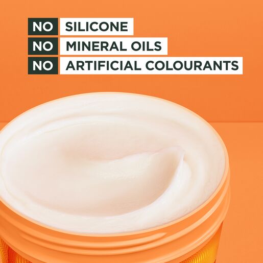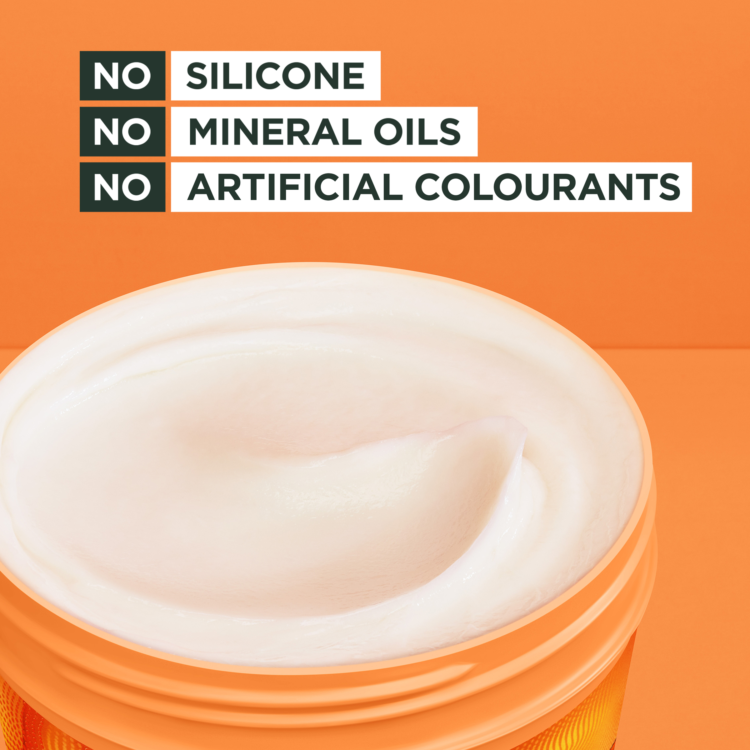 Garnier Fructis Papaya hair food multi use Mask, repairs damaged hair, 94% less breakage, Boosted with Vitamins C, E, F, 350ml, 97% natural origin ingredients, No silicone, No artificial colourants, Cruelty Free, Vegan, Made of 100% recycled plastic.