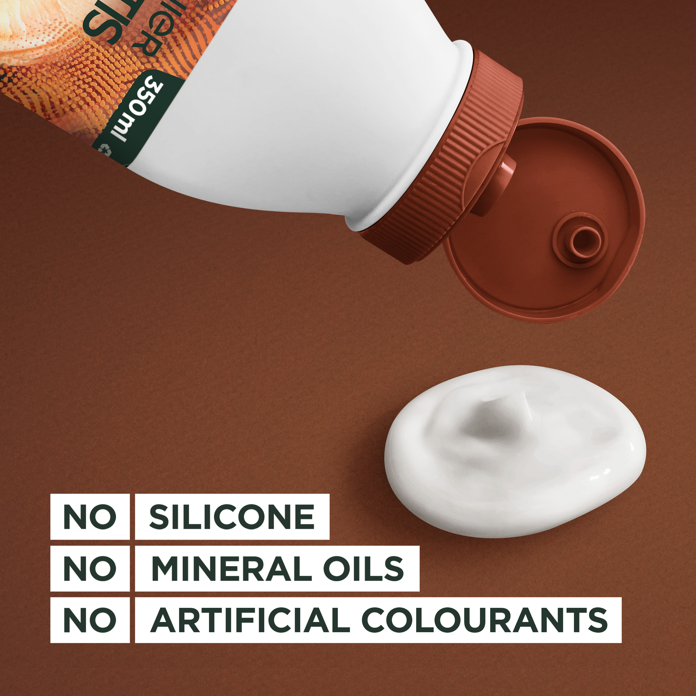 Garnier Fructis Macadamia hair food Conditioner, Smooths frizzy dry hair, 48H anti-frizz, first nutritional fact-based haircare, 350ml, No silicone, No artificial colourants, 97% natural origin ingredients, Cruelty Free, Vegan, Made of 100% recycled plastic.
