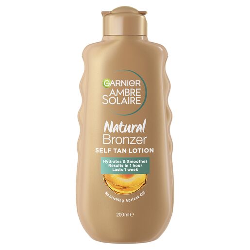 Garnier Natural Bronzer Self-tan Lotion gives a beautiful tan in one hour* whilst hydrating your skin. Enriched with nourishing apricot oil, it provides streak free, natural-looking tan that lasts up to one week*.