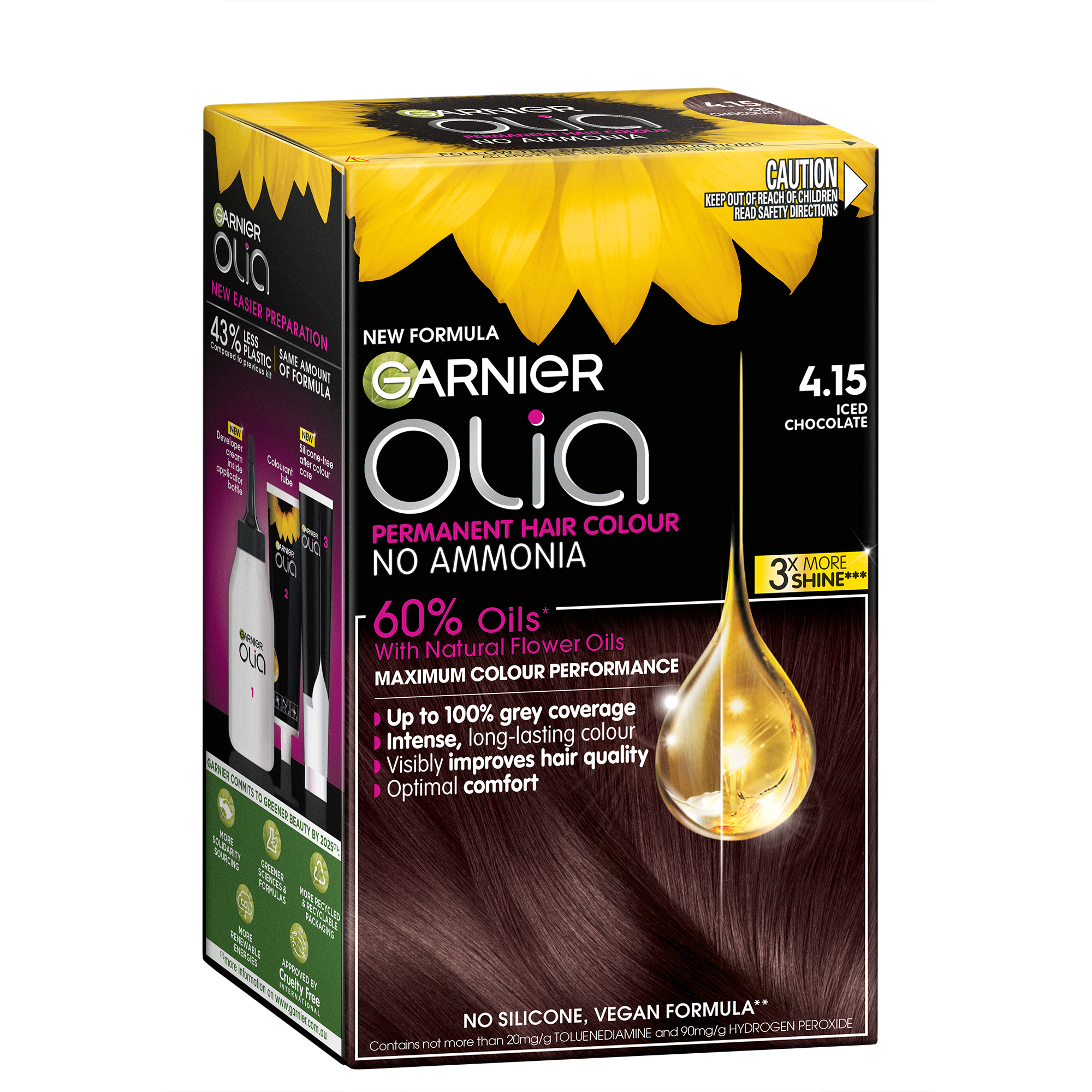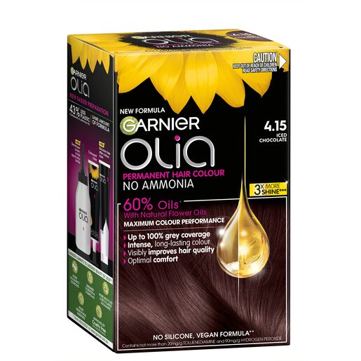 Garnier Olia 4.15 Iced Chocolate Permanent Hair Colour No Ammonia, 60% Oils