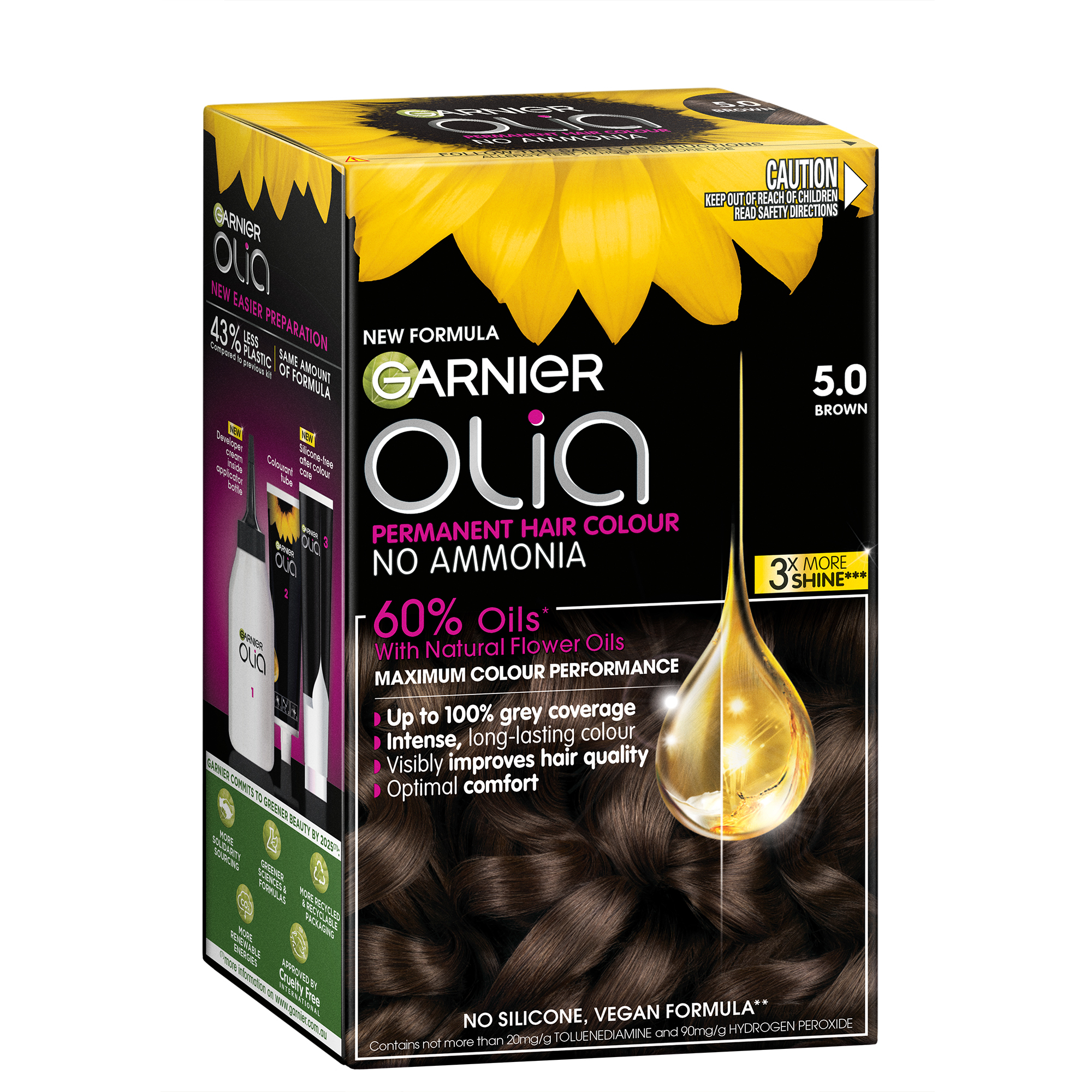 Garnier Olia 5.0 Brown Permanent Hair Colour No Ammonia, 60% Oils