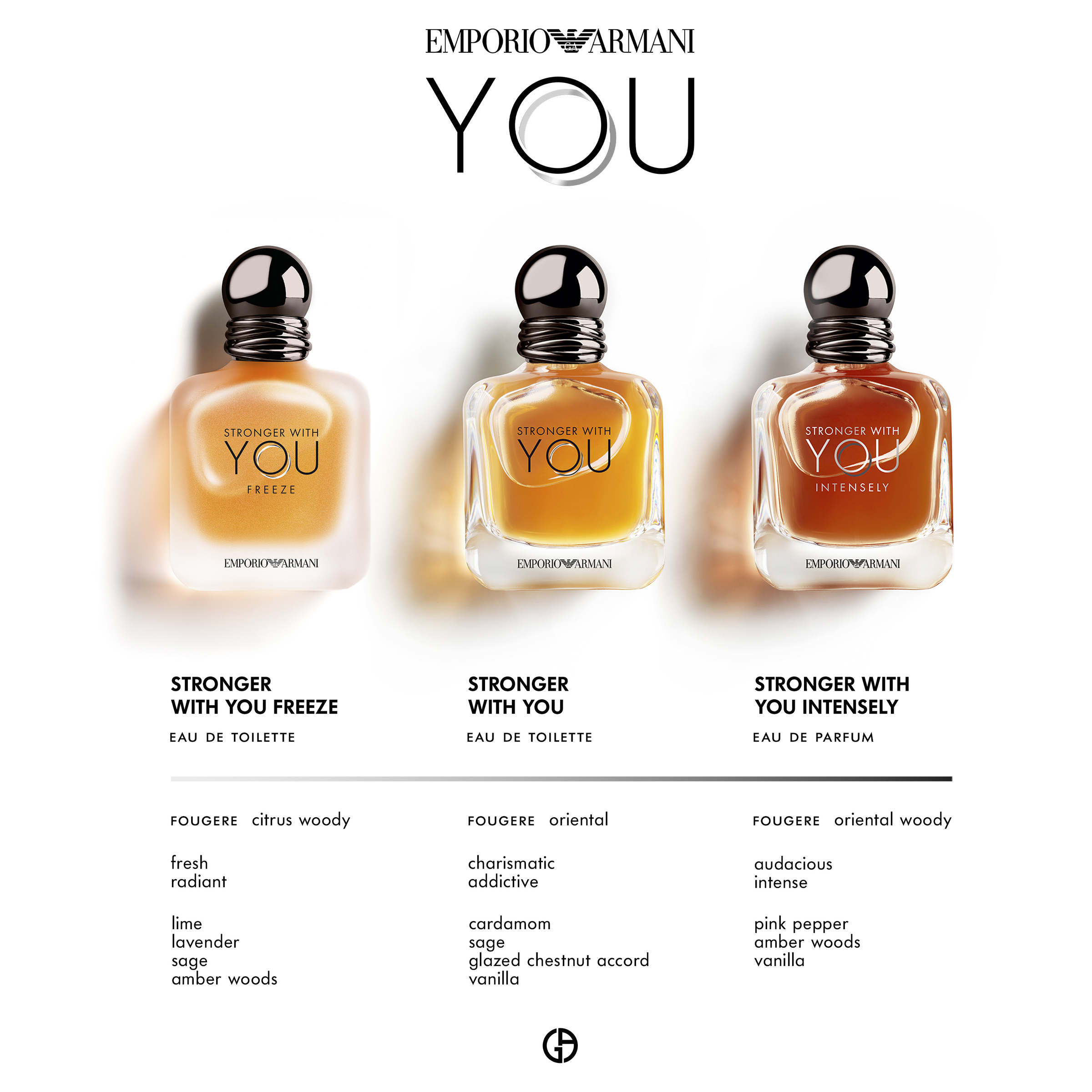 Stronger With You is unpredictable, lives in the present and is moulded by the energy of modernity. A magnetic fragrance for men.