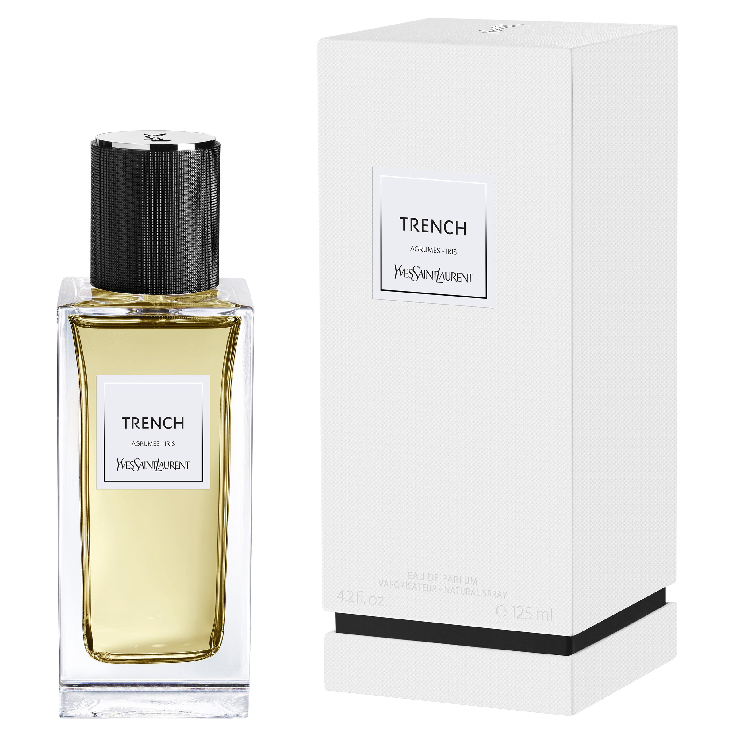 Inspired by the emblematic creations of Mr Yves Saint Laurent, Le Vestiaire Des Parfum Collection is a collection of fragrances that each interprets a centre piece of the couturiers wardrobe. Coated in black and worn over an evening dress, Mr Yves Saint Laurent's interpretation of the trench coat cuts across the codes in a wave of audacity. Beyond the infinite reinventions of its fabric, colour and proportions, its belted silhouette, carefree look and assertive elegance allow the trench coat to remain a unique and timeless garment. Le Vestiaire Des Parfums Trench Eau De Parfum reveals a rainfall of radiant citruses on belted iris of sophistication. The testimony of a spellbinding intuitive sensuality with a sharp and stately cut. Iris - leather flower - Edgy Cologne Trench reveals its refined sense in an architectural bottle, enlighten with a pure square silver trim and an ornamented jewel cap, mirror to the iconic tuxedo cloth, the “grain de poudre.” A transposition of a couture piece, now expressed into a genderfluid fragrance masterpiece. Fragrance Composition Top Notes: Bergamot Essence, Tangerine Essence & Fig Heart Notes: Iris Concrete & Neroli Accord Base Notes: Ambrette Fir Absolut, Cedar Accord & Musk