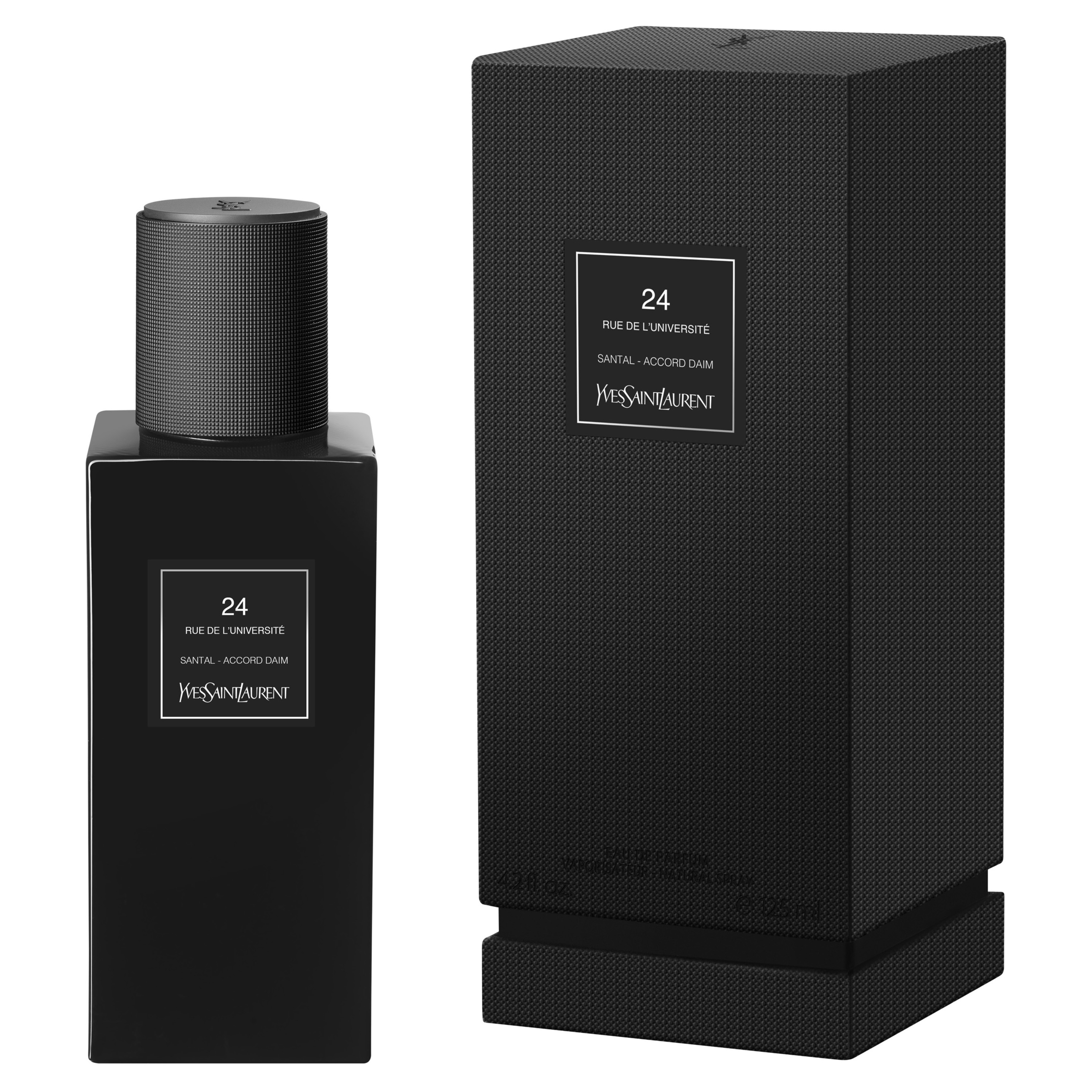 The Le Vestiaire Des Parfum Edition Couture is a collection of fragrances inspired by emblematic addresses of Yves Saint Laurent Couture house. Le Vestiaire Des Parfums Edition Couture 24 Rue de l'Université Eau de Parfum. The tension between the velvety Suede accord and the creamy Sandalwood gives birth to an intriguing fragrance. The contrast between these noble ingredients reflects the serenity and the focused atmosphere of the white wood-panelled studios of the 24 Rue de l’Université. The studios of the house of Saint Laurent are now located at this address.