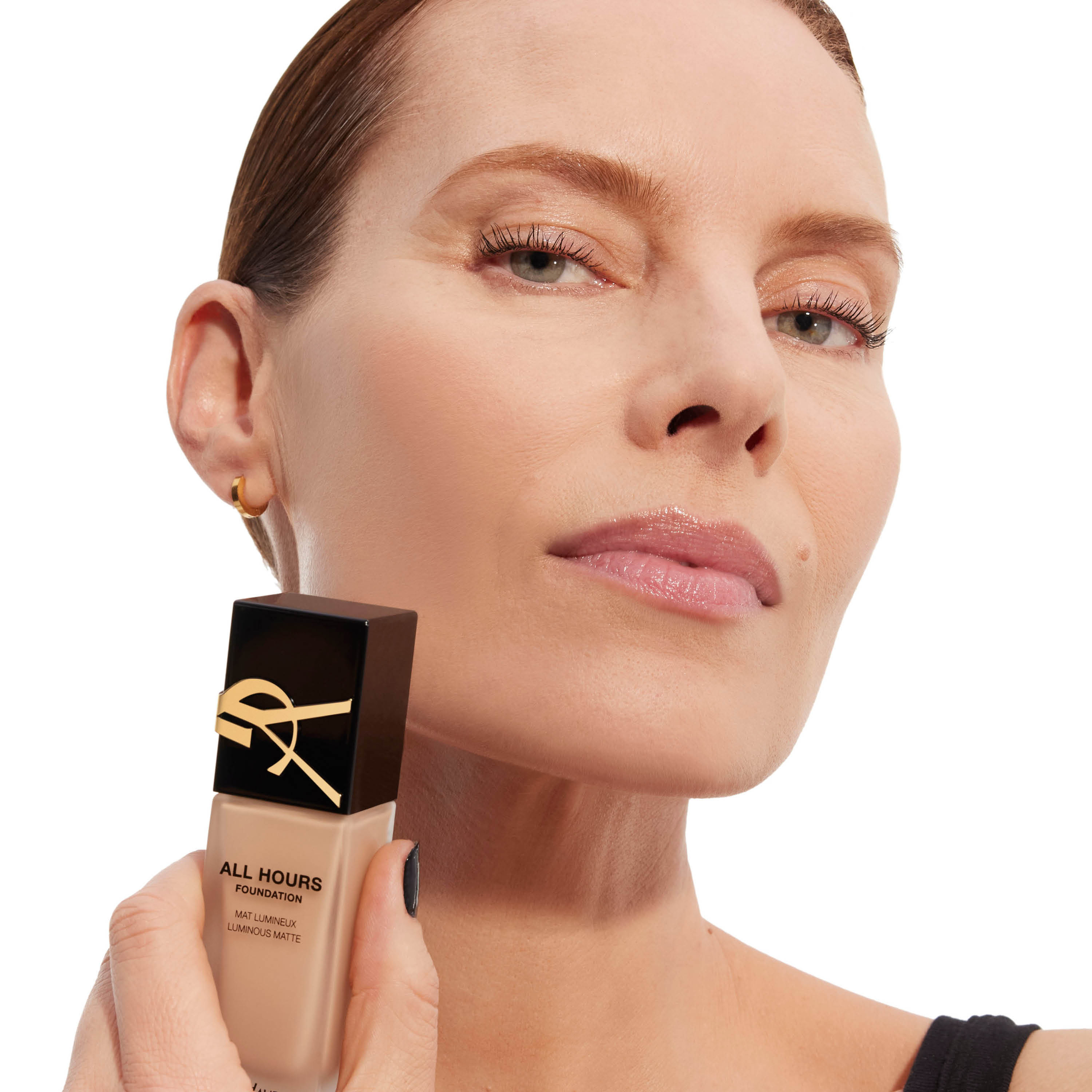 The New All Hours Foundation infused with Hyaluronic Acid. 24*H Full Coverage, Weightless Feel. Complexion perfection you can rely on all day, all night, ALL HOURS. An upgraded breathable formula providing 24h* full coverage and weightless feel. Experience an ultra-sensorial skin on skin sensation with a seamless cover action, as if you had a flawless naked skin. The new formula is infused with Hyaluronic acid. It provides all day hydration feel and day after day skin caring benefits, even after removal. Proven: skin feels softer, smoother, hydrated, after only 2 weeks*. *Consumer test with 111 women.
