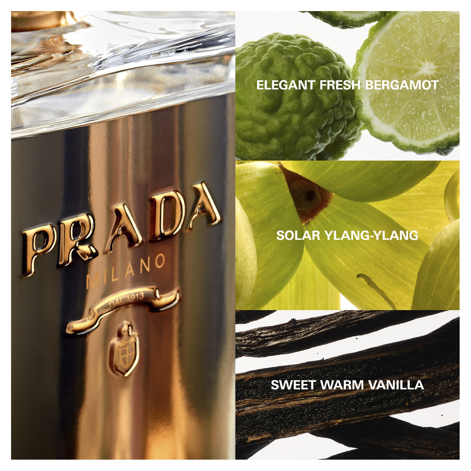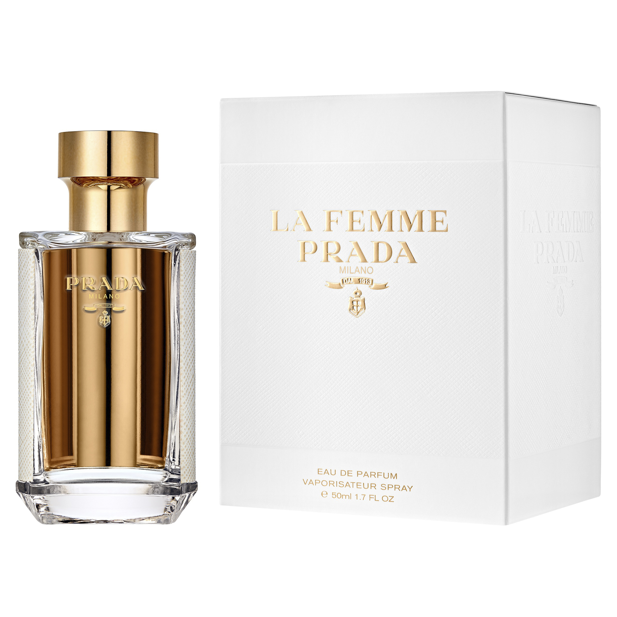 La Femme Prada Eau de Parfum is a sophisticated fragrance, a floral green scent combining unexpected frangipani accord, delicate ylang-yland and sensual vanilla. La Femme Prada is a fragrance mixing classic and unexpected ingredients to reflect duality of the feminine identity. The perfume bottle is wrapped in iconic white Prada Saffiano. The original Prada logo appears raised in gold on the front of the bottle. An internal mirror acts as a reflection of the multi-faceted nature of La Femme Prada.