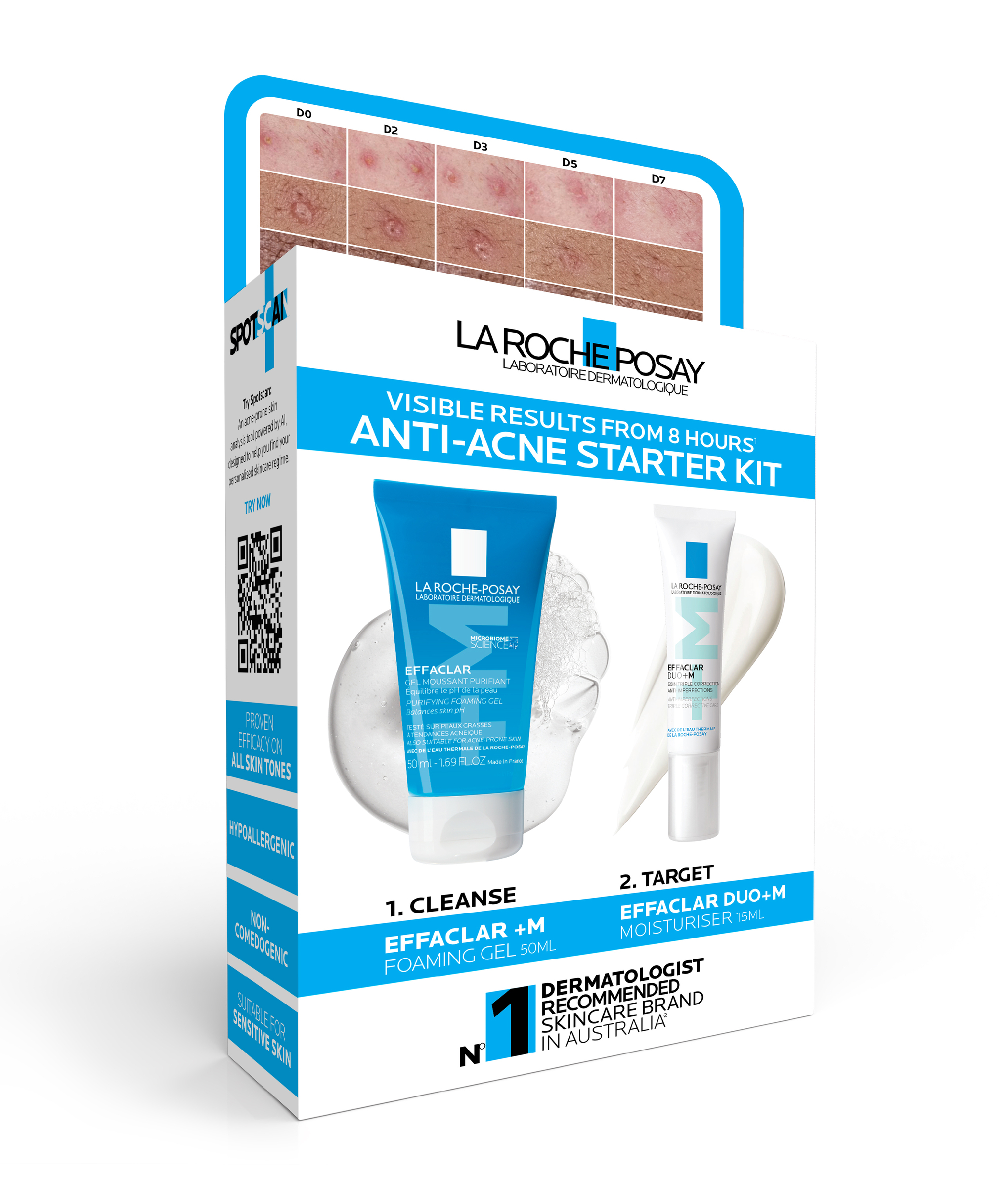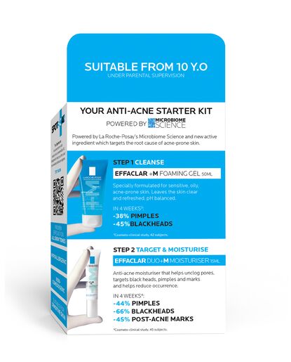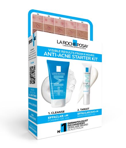 The Effaclar range is a daily use regime for sensitive, oily, acne-prone skin. The Effaclar Anti-Acne Starter Kit provides you with your Effaclar daily routine with up to a two-week supply, great for trial or travel. This kit contains: • Effaclar +M Purifying Foaming Gel Cleanser 50ml • Effaclar DUO+M 15ml