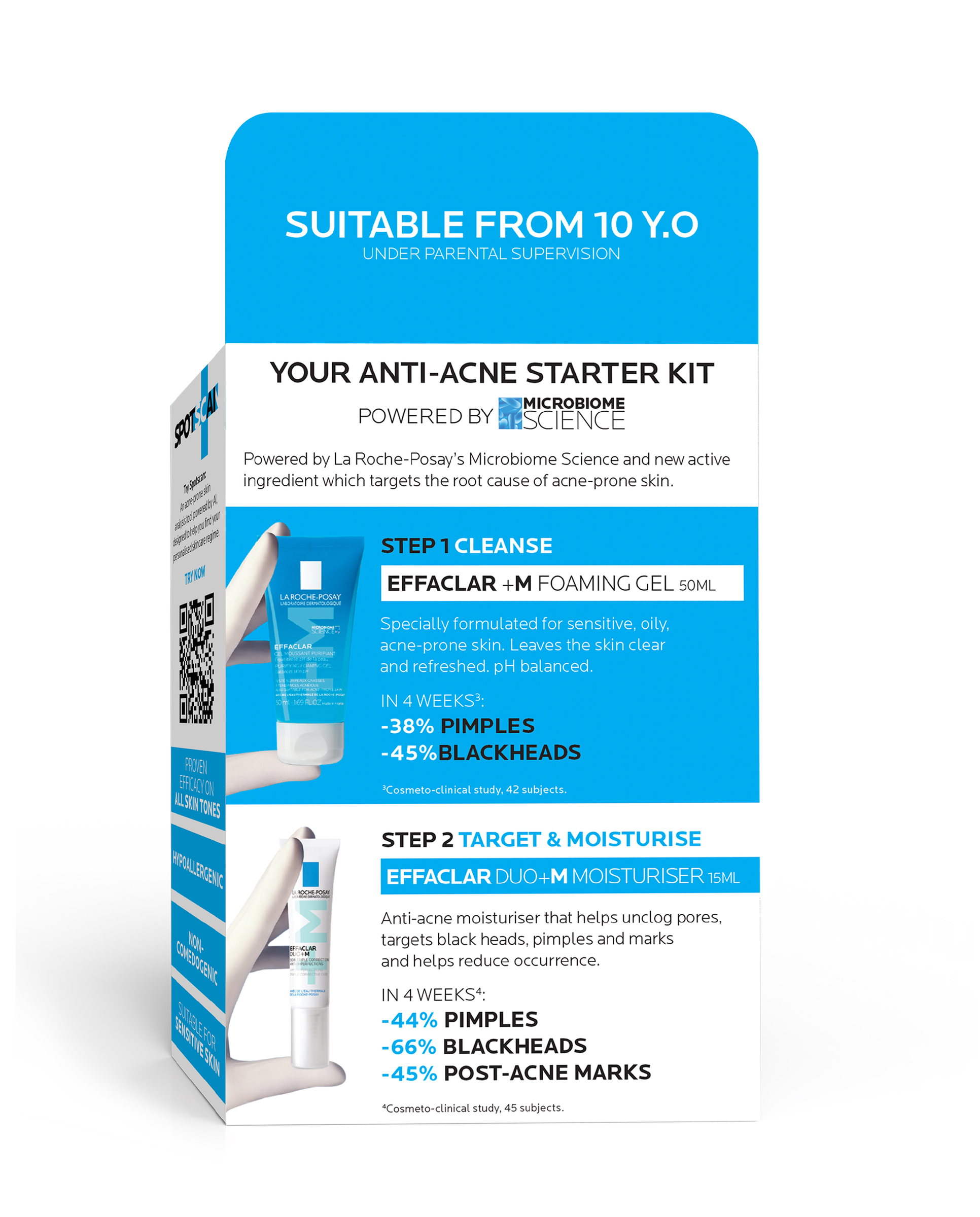 La Roche-Posay introduces its newest innovation in microbiome science, the Effaclar DUO +M Moisturiser. Experience triple corrective care for oily and acne-prone skin for our best anti-imperfections efficacy yet, now faster than ever*. DUO+M corrects blackheads, blemishes and post-acne marks, now with results visible from 8 hours**. Specially formulated for oily, acne-prone skin in adults and teenagers, suitable from 10 years old***. *Compared to Effaclar DUO+ **Consumer self-assessment, 54 subjects, after 1 application ***Under parental supervision