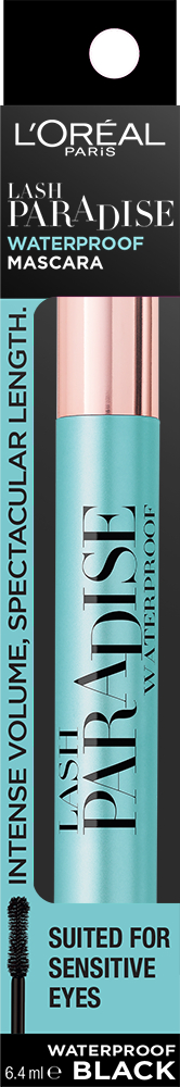 Take your lashes to paradise with the improved, more natural formula of Lash Paradise waterproof mascara by L'Oreal Paris. Achieve breathtaking volume with a formula enriched with Floral Oil to condition lashes. Delivers intense volume and spectacular lash length with the most pleasurable application experience. 20x more volume*, up to 2x more length* The whipped volumizing formula creates intense lash volume and dramatic length Caring oil infused formula for soft, supple lashes without any flaking or clumping. The feather-soft wavy brush gentle applicator for extreme comfort around sensitive eye areas. Ophthalmologist tested. Free from Parabens & Alcohol and suitable for sensitive eyes. *Instrumental test, 24 subjects